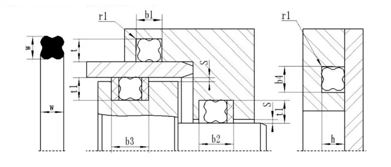 1. Statické těsnění nebo reciproce lineárního pohybu: (1) Těsnění díry: Vnitřní průměr prstence ve tvaru hvězdy by měl být kompatibilní s drážkou nebo méně než asi 2% průměru drážky. Protože předběžná síla generovaná předběžnou kompresem může účinně zabránit kroucení těsnění ve tvaru hvězd a kroucení a válcování. (2) Těsnění hřídele: Vnitřní průměr prstence ve tvaru hvězdy by měl být stejný nebo přiměřeně větší než vnější průměr hřídele asi 0,2 ~ 0,3 mm, nebo může být asi o 1% větší než vnější průměr hřídele. Výsledkem je, že pečeť bude snazší instalovat a mít delší životnost.