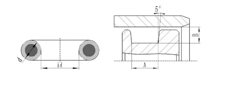 Schematický diagram drážky zapouzdřeného O-kroužku