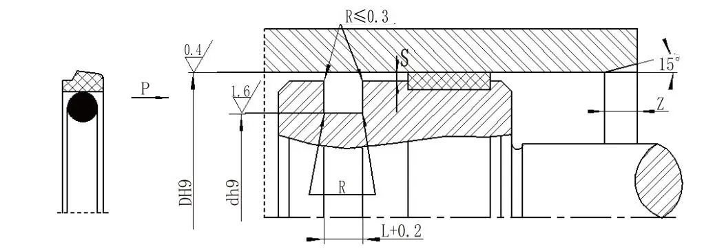 Těsnění stupňovitého pístu se skládá z stupňovitého těsnicího kroužku plněného PTFE a O-kroužku, vhodného pro jednosměrné tlakové těsnění v hydraulických aplikacích s vratným pohybem. O-kroužek poskytuje radiální sílu a kompenzuje opotřebení těsnicího kroužku. Obvykle se používá ve spojení s vodicím kroužkem. Pro průměry válce menší než 30 mm by měla být použita konstrukce s dělenou (otevřenou) drážkou.