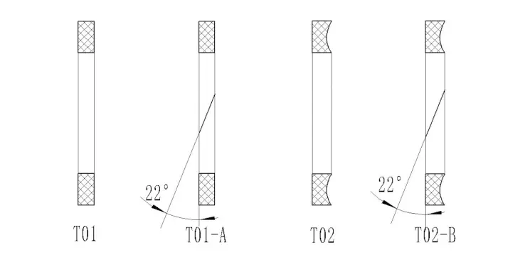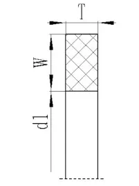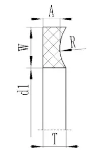 (2) Opěrné kroužky série T02 se skládají z vnitřního průměru D1, šířky W a tloušťky A a T.