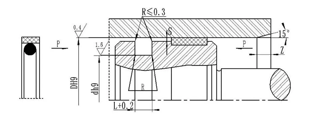 Příklad objednávky: RC66-D*d*L-PTFE3-R01 (vnější průměr*vnitřní průměr*šířka drážky) PTFE3, R01-kód materiálu